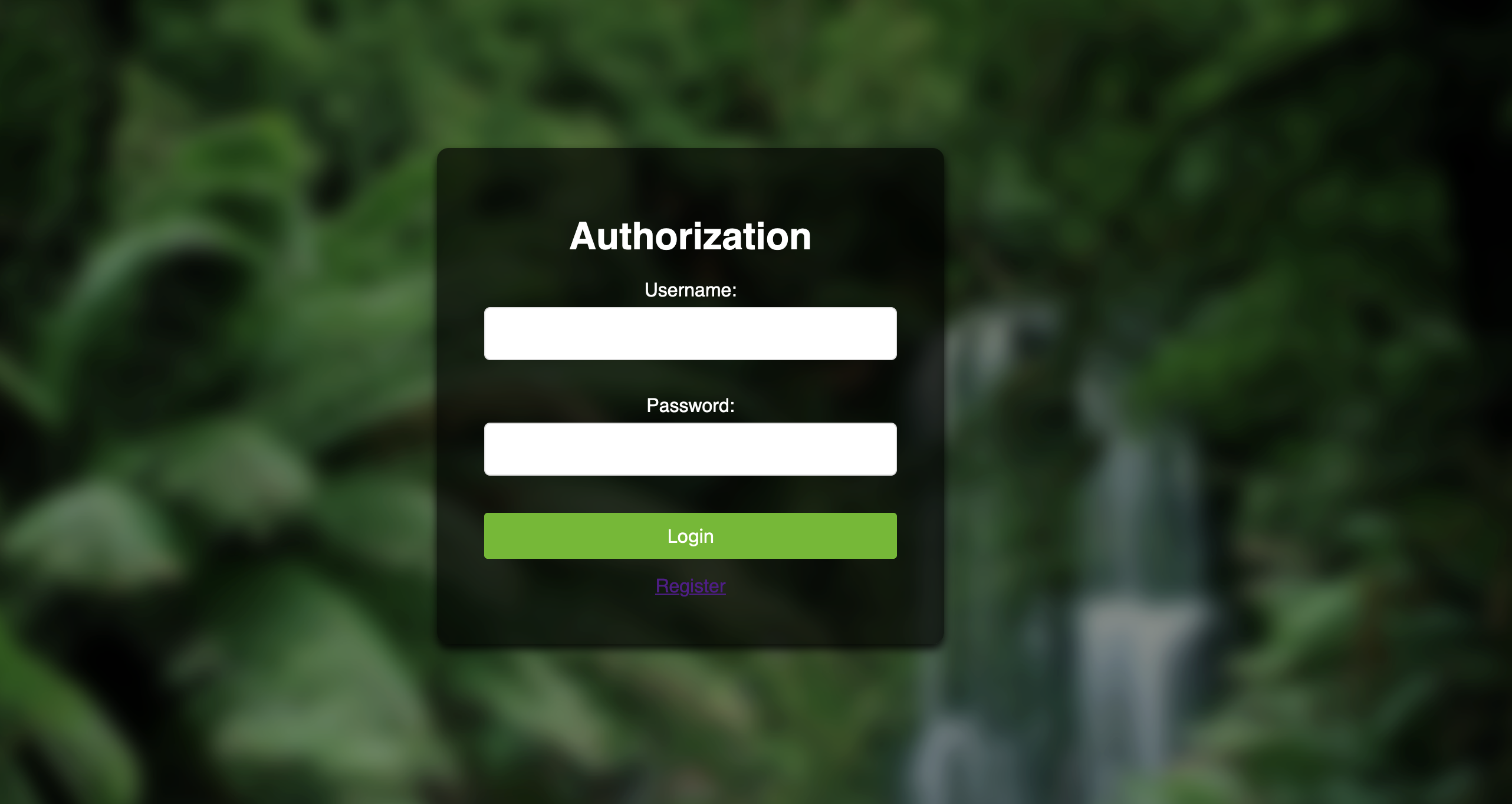 На первом порту висит приложение с формой регистрации и авторизации
