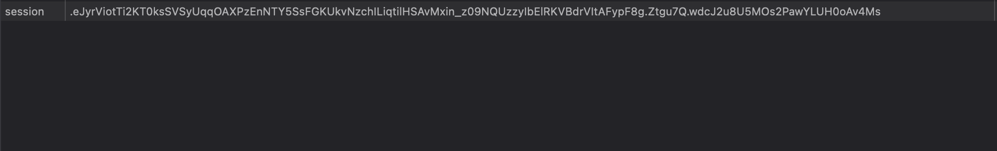 └─$ python3 -m flask_unsign -u --wordlist=/usr/share/wordlists/rockyou.txt --cookie '.eJyrViotTi2KT0ksSVSyUqqOAXPzEnNTY5SsFGKUkvNzchILiqtilHSAvMxin_z09NQUzzyIbElRKVBdrVItAFypF8g.Ztgu7Q.wdcJ2u8U5MOs2PawYLUH0oAv4Ms' --no-literal-eval