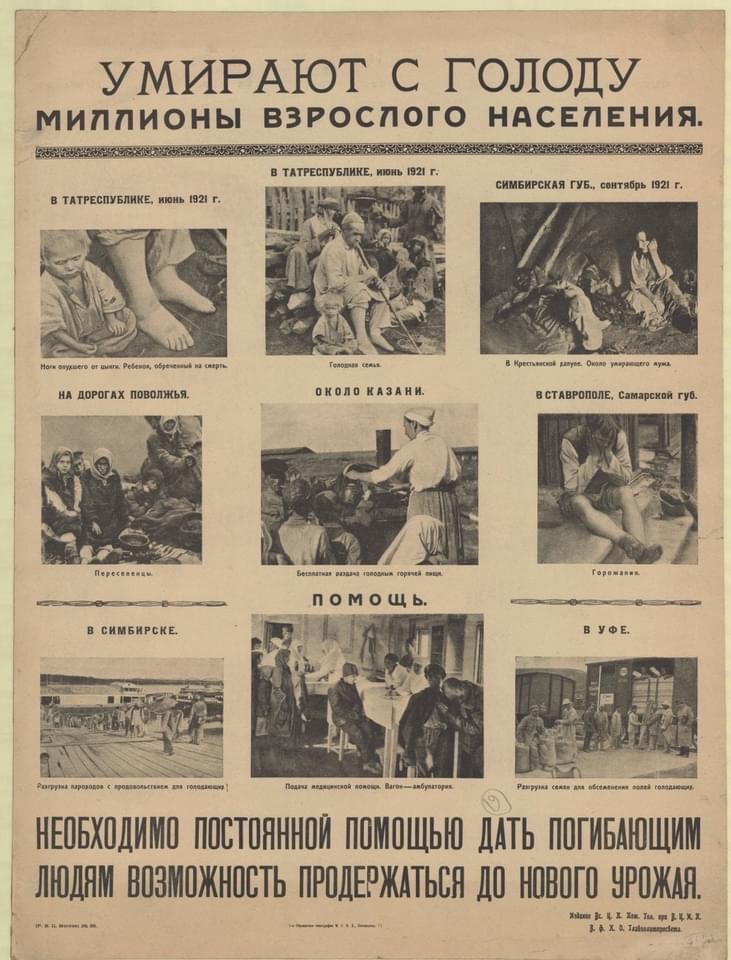 Этот страшный период большинству известен как «голодающее Поволжье». Этот голод не скрывался, о нём упоминается во многих советских фильмах и книгах. Скрывался только его масштаб, его истинные причины и объём помощи иностранцев. Начался он летом 1921 года, но причина его была заложена ещё в 1918 году.