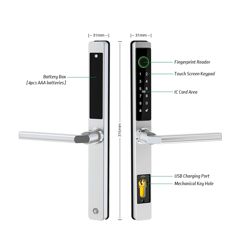 TTlock APP Waterproof Smart Finger print Code Card Keyless Slim Electric Door Lock For Outdoor Pull Push Sliding Aluminum Door - Купить с бесплатной доставкой