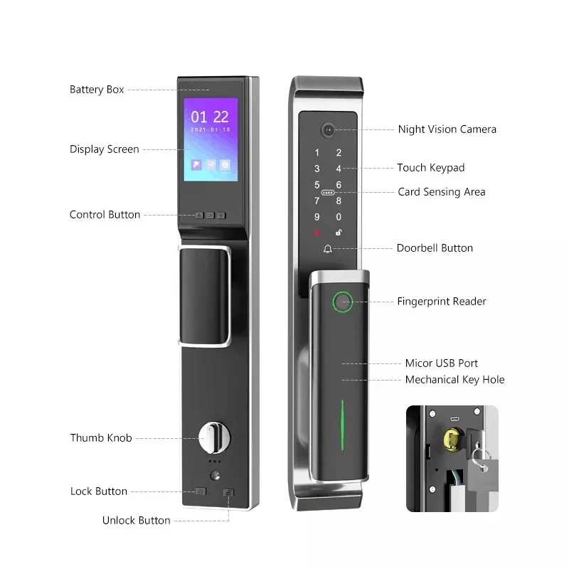 TTlock Smart Lock Fingerprint Electronic Door Lock Intelligent Biometric Code Digital with Camera Peephole Fully Automatic Lock - Купить с бесплатной доставкой