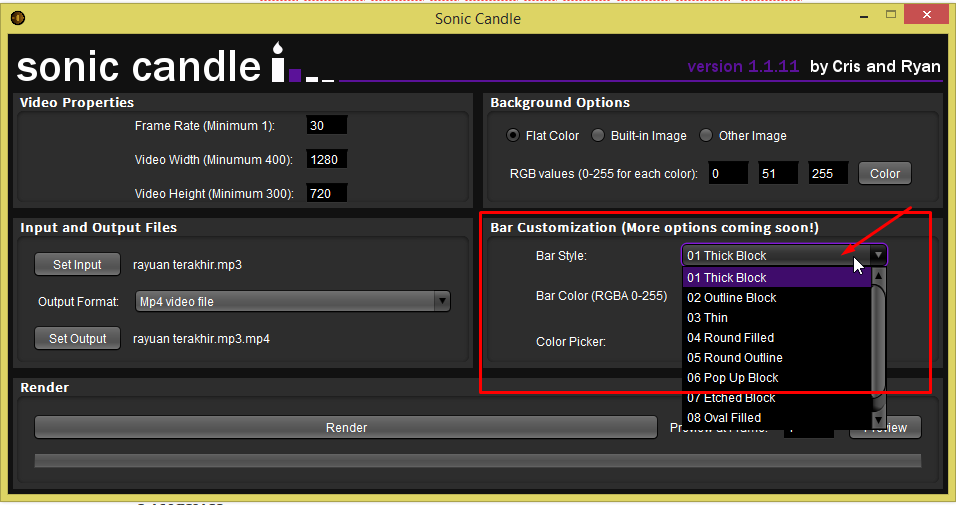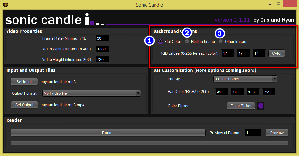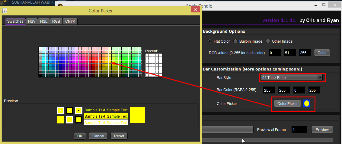 - Bar Color ialah warna bar equalizer yang kita nak pilih.