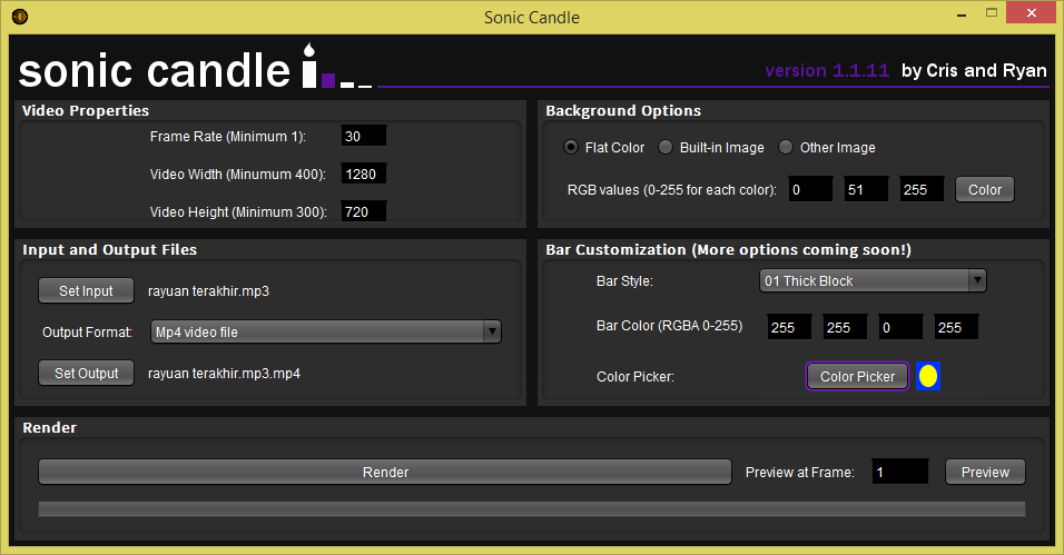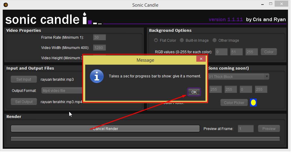 Lepas ni saya akan detailkan setiap menu semasa proses kita nak siapkan audio spectrum yang pertama. Baik...mari kita mulakan...buka aplikasi sonic candle