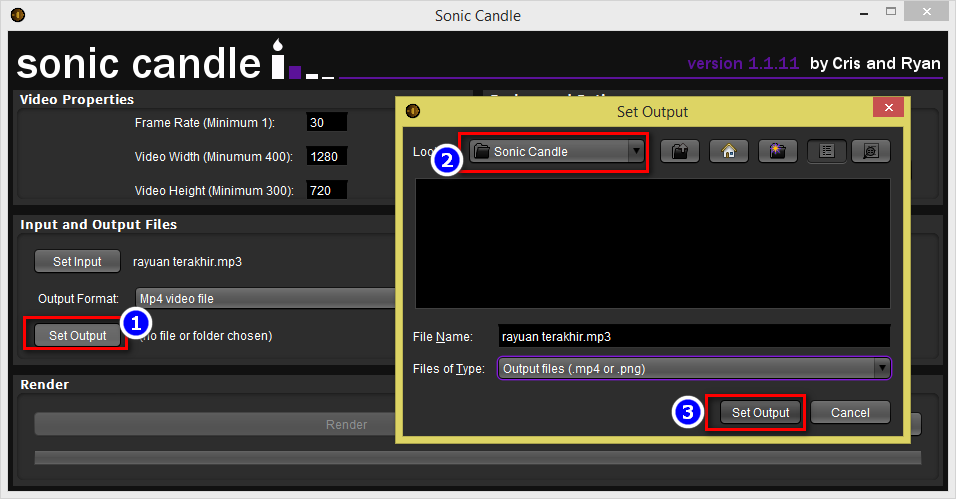 - Klik set input untuk memasukkan fail mp3 (audio)