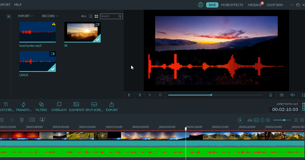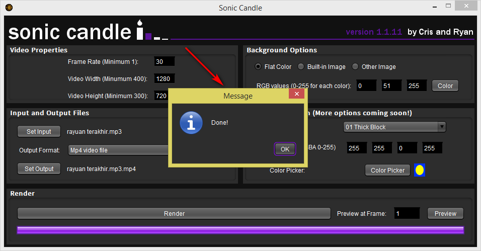 Selesai dah untuk buat audio spectrum menggunakan Sonic Candle...untuk masukkan dalam klik video pulak....next tutorial akan muncul..