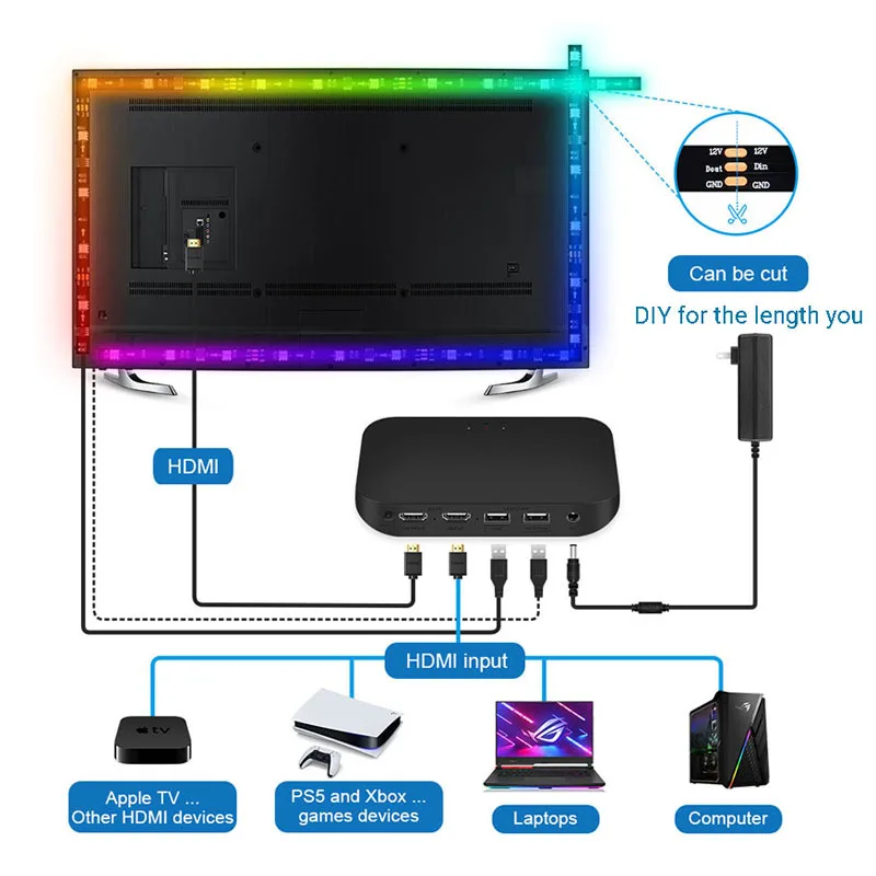 IPjPgKERCЗдесь вы сможете купить TV Led Backlight For 4K HDMI 2.0 Device Sync Box Led Strip Light Kit Wifi Alexa Voice Google Assistant Control Smart Music Sync с бесплатной доставкой до вашего почтового отделения.