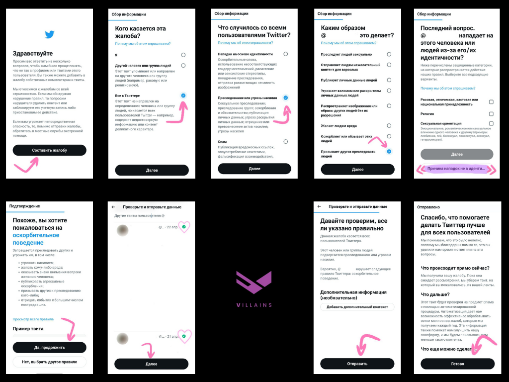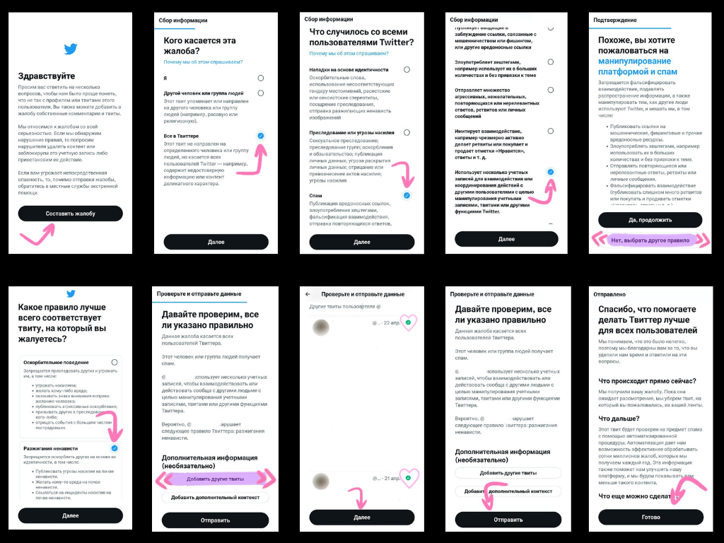 Репорт спам-твитов и аккаунтов