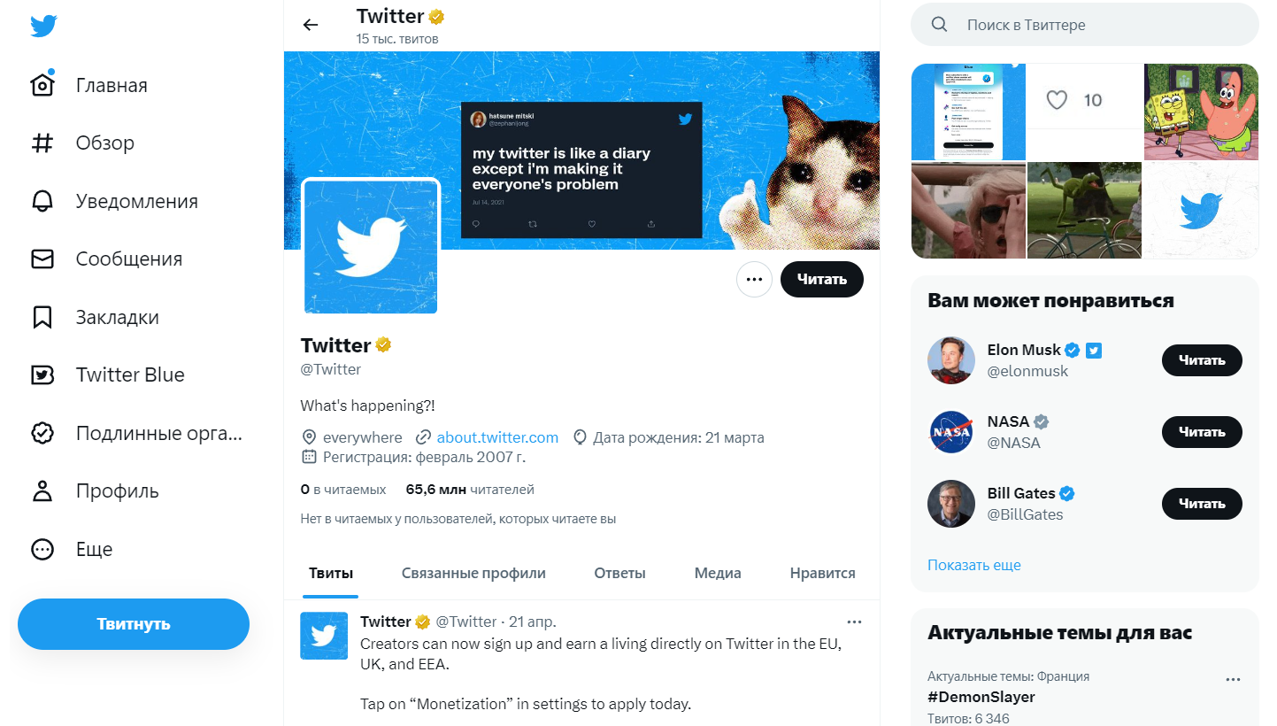 - Приложение Twitter или страница в браузере с сайтом