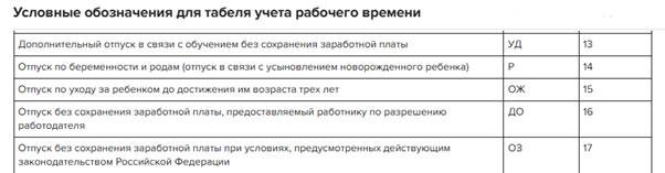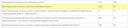 Табель очередной отпуск