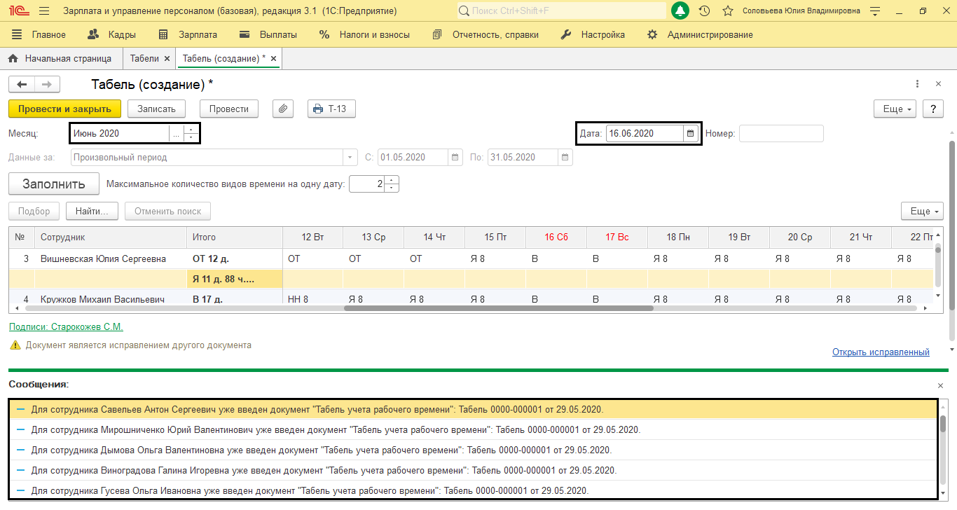 Табель упп