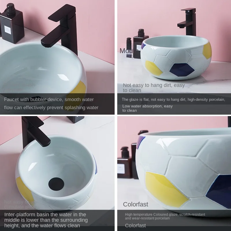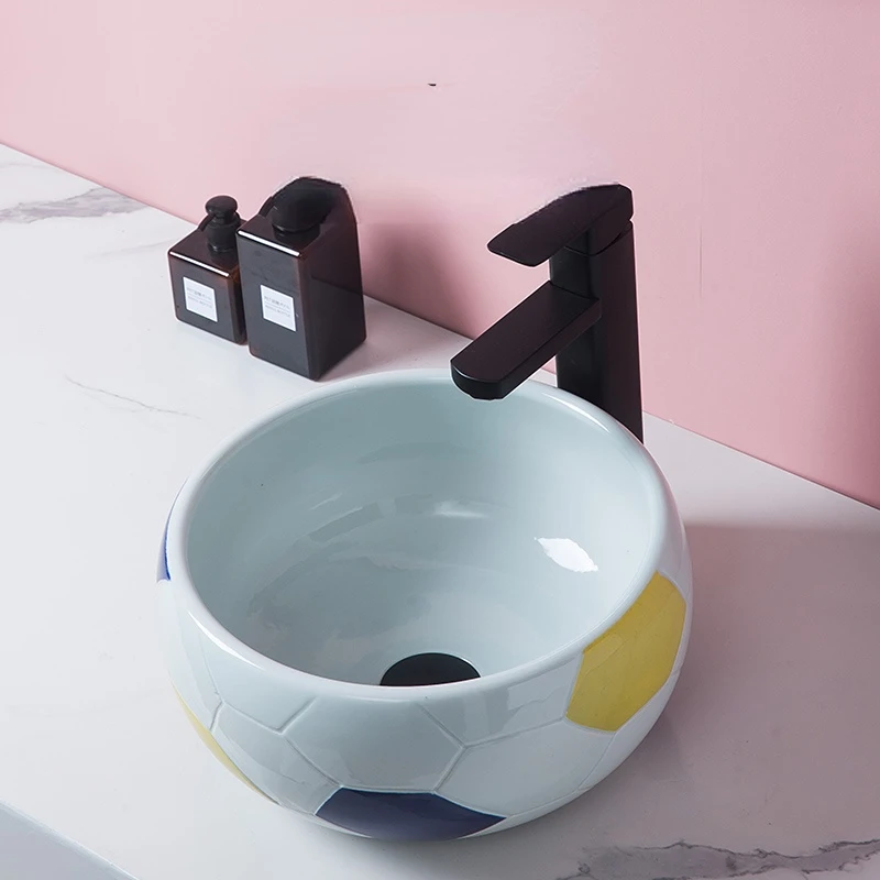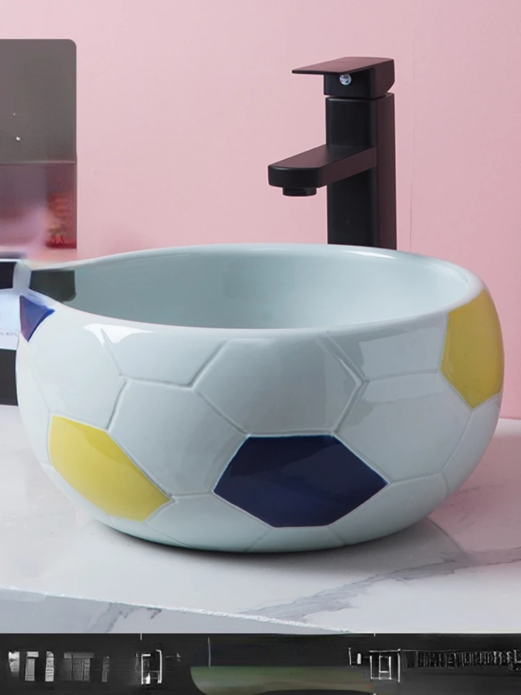 Table Basin Splash-Proof Water Deepening Ceramic Basin Single Basin Kindergarten Small Size Washbasin Creative Football - Купить с бесплатной доставкой