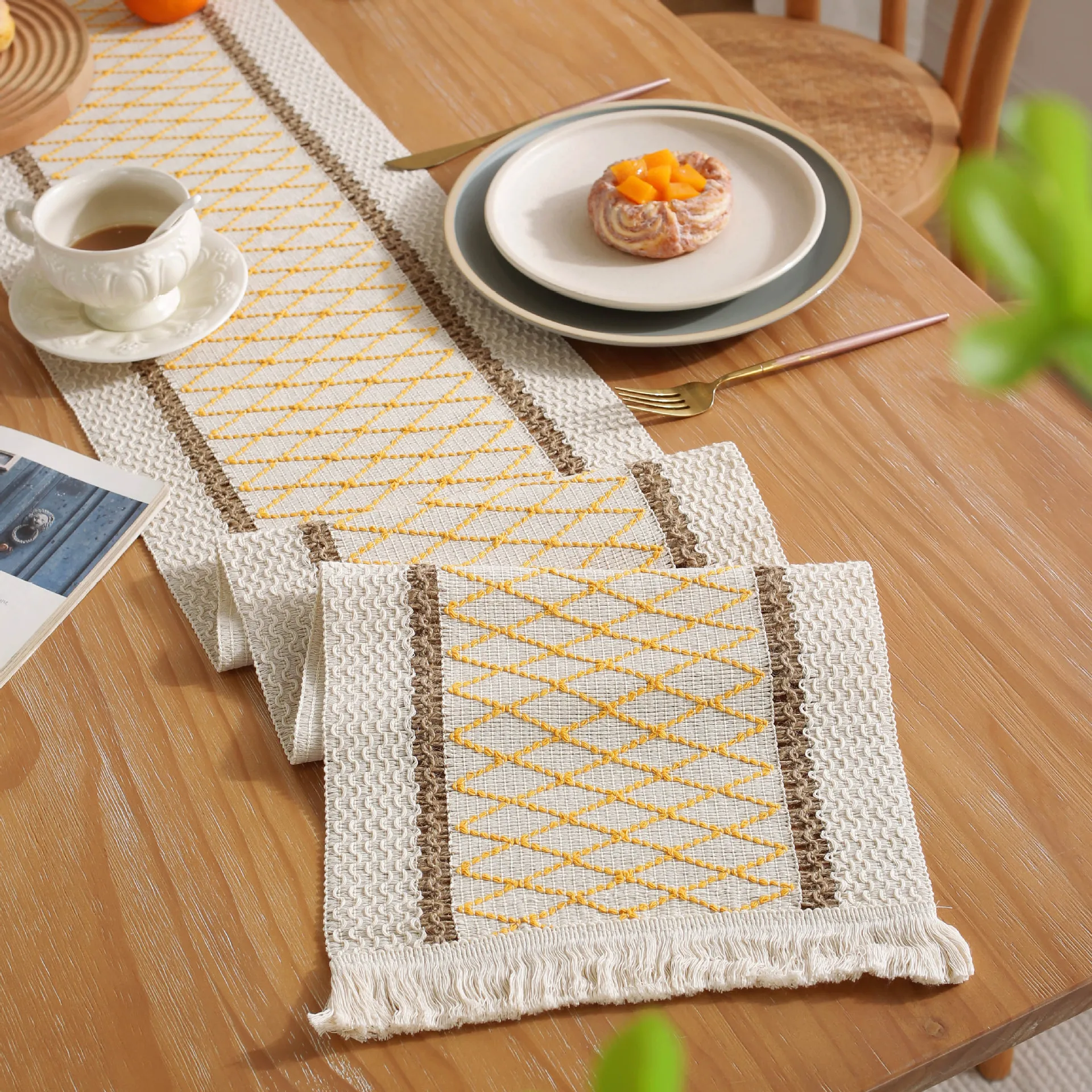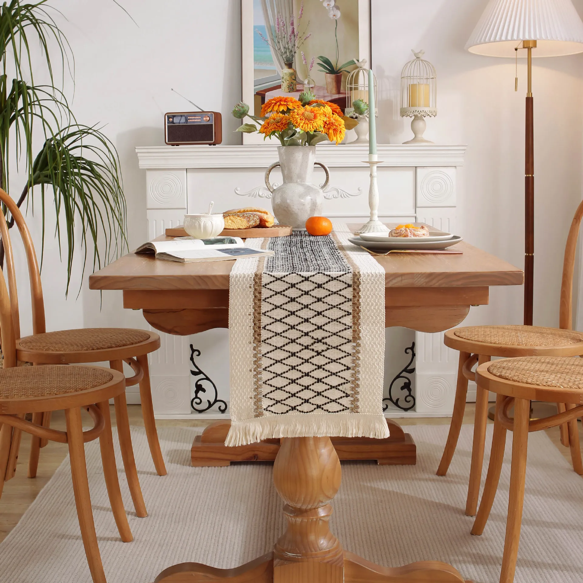 «Table Runner American Style Cotton Linen Diamond Natural Material Jute Weave Contrast Color Black Thread Tassel Holiday Placemat» по лучшей цене на рынке! Всего за 12$ (1140рублей)