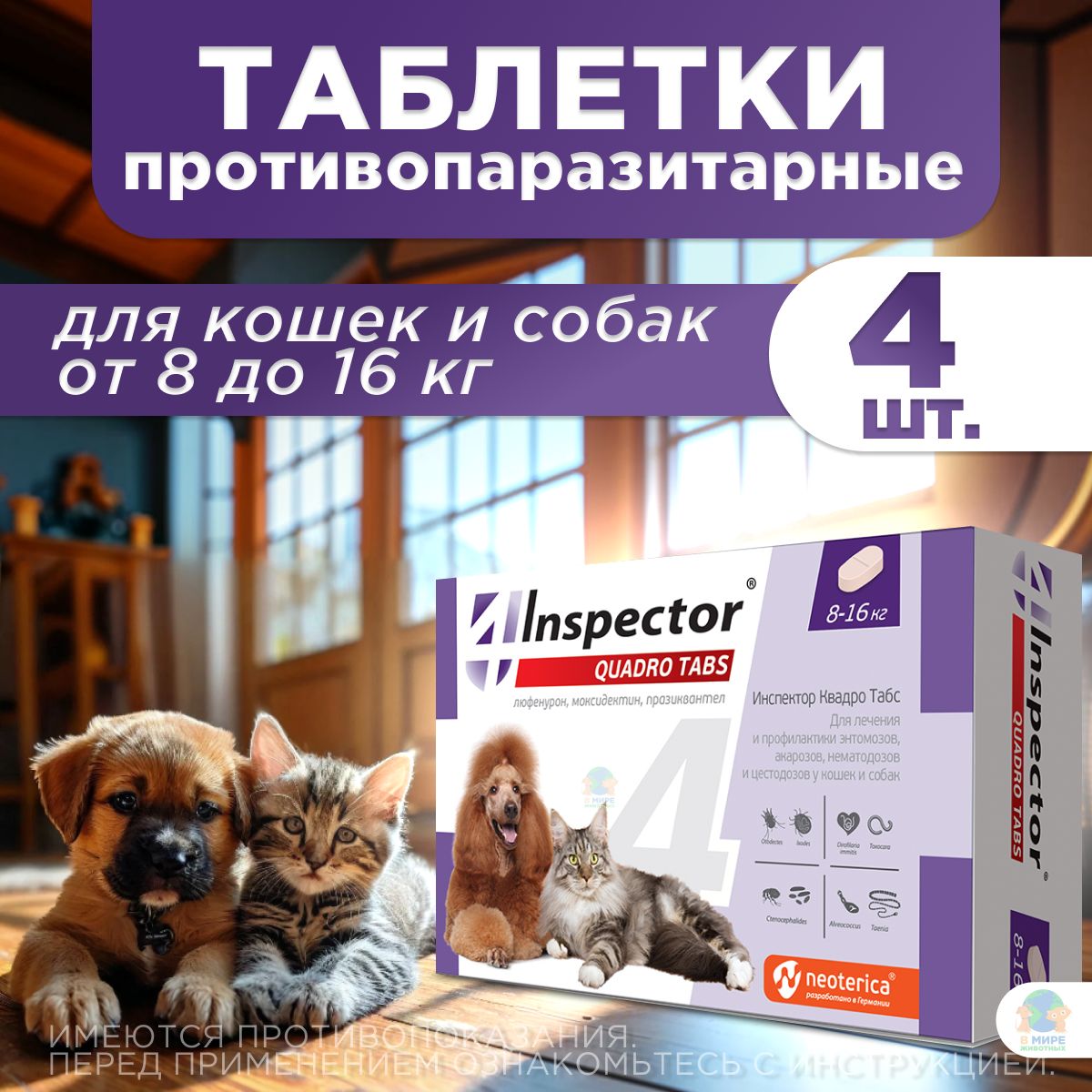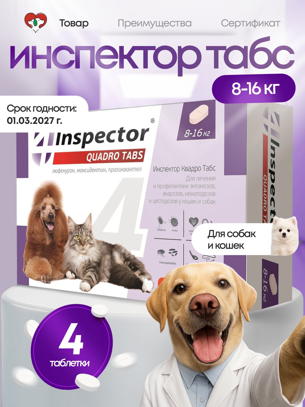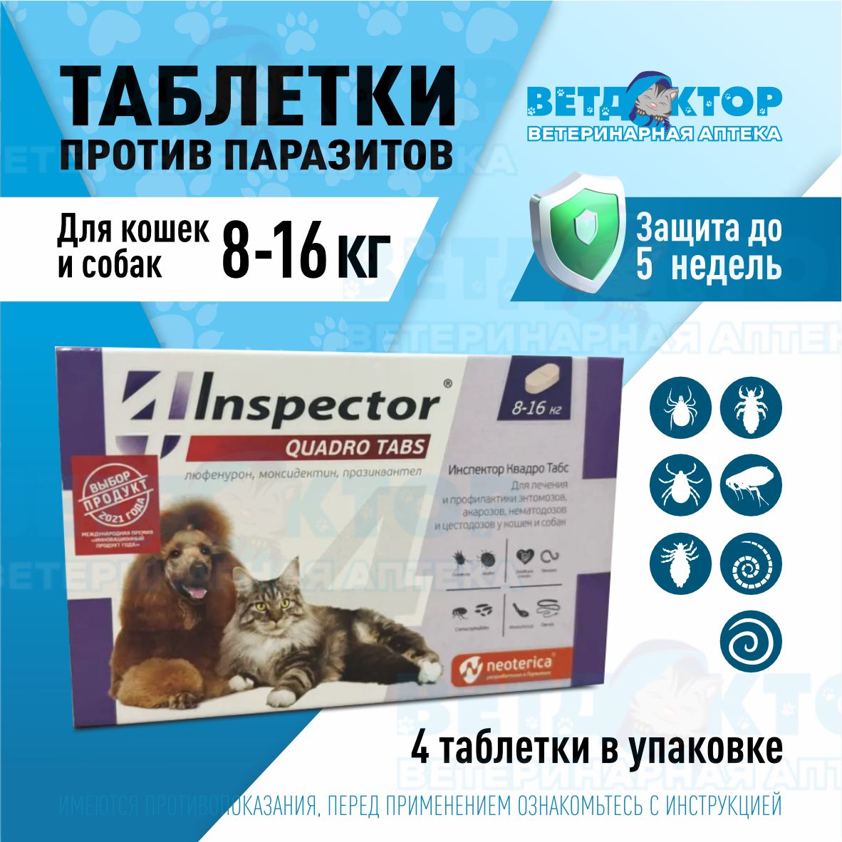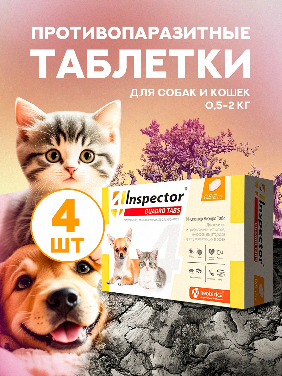 Таблетка инспектор квадро табс для кошек 140 фото