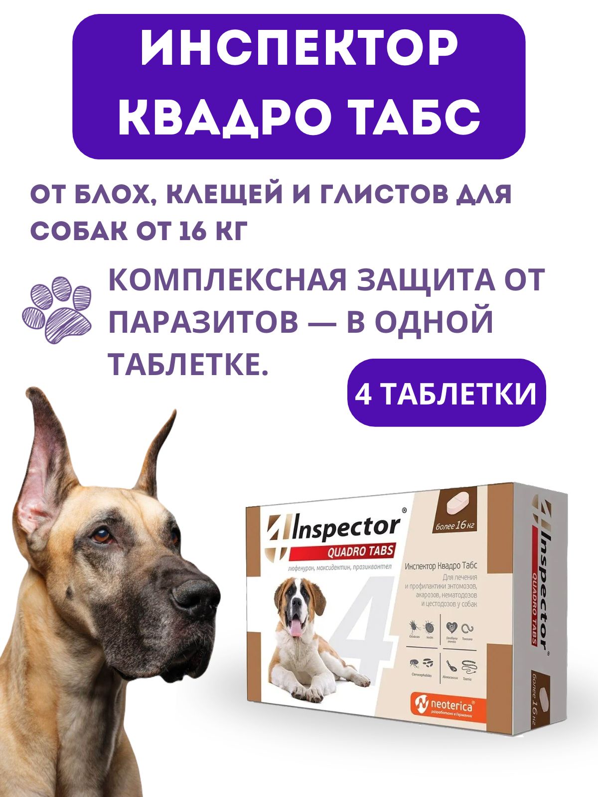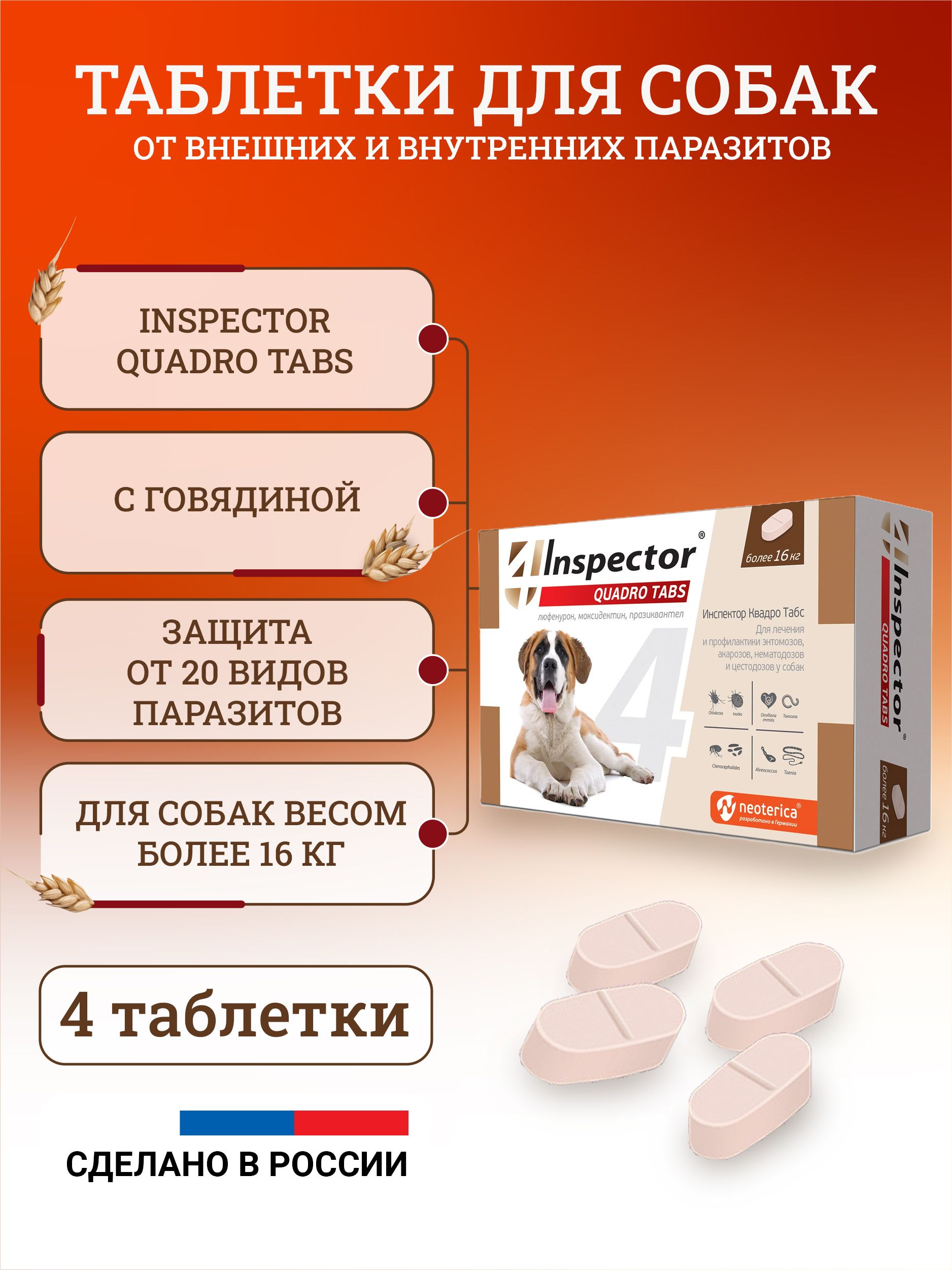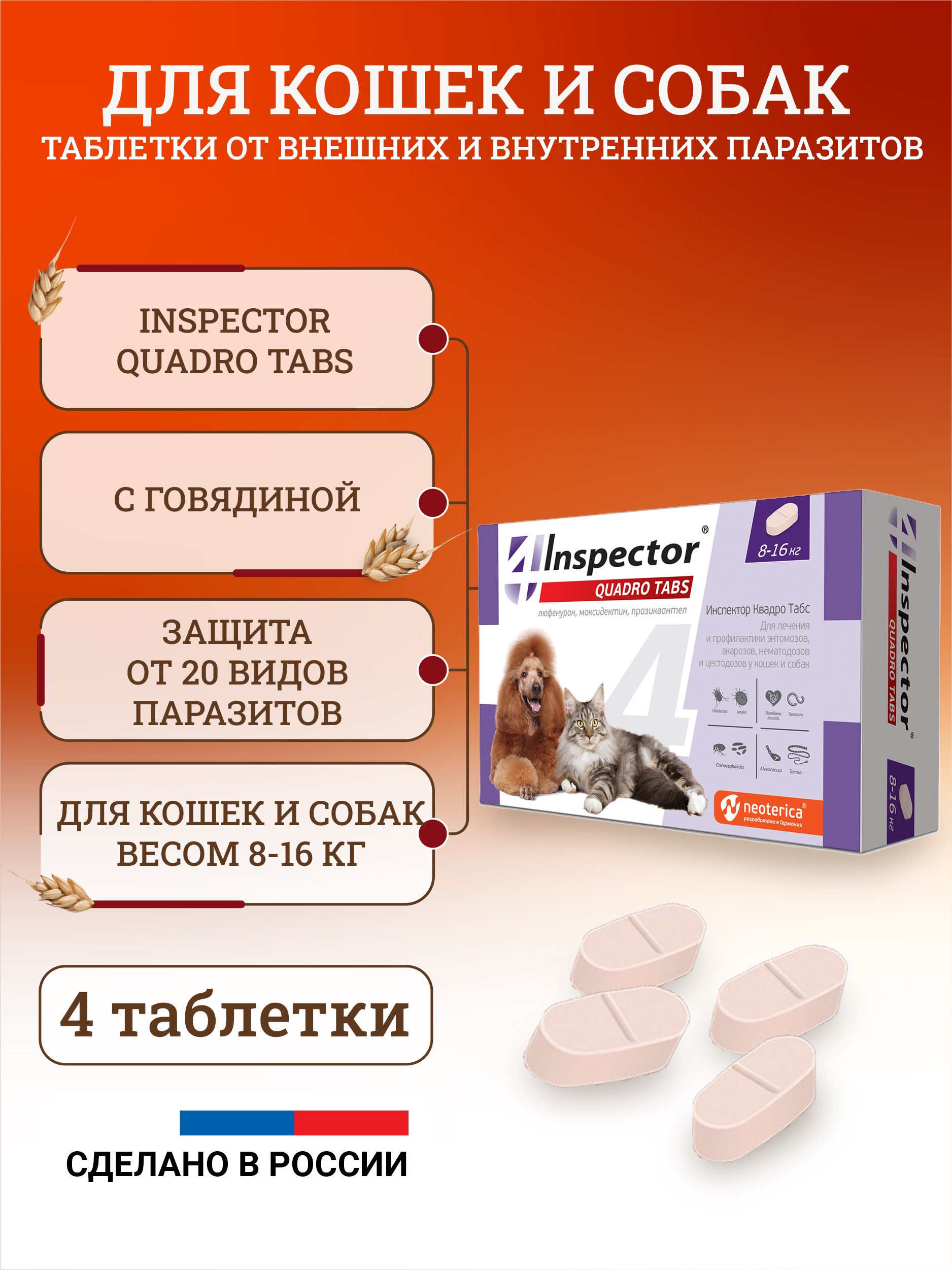 Таблетка инспектор квадро табс для кошек