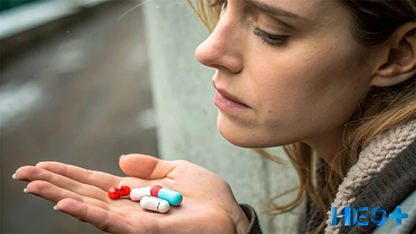 Таблетка в руке девушки