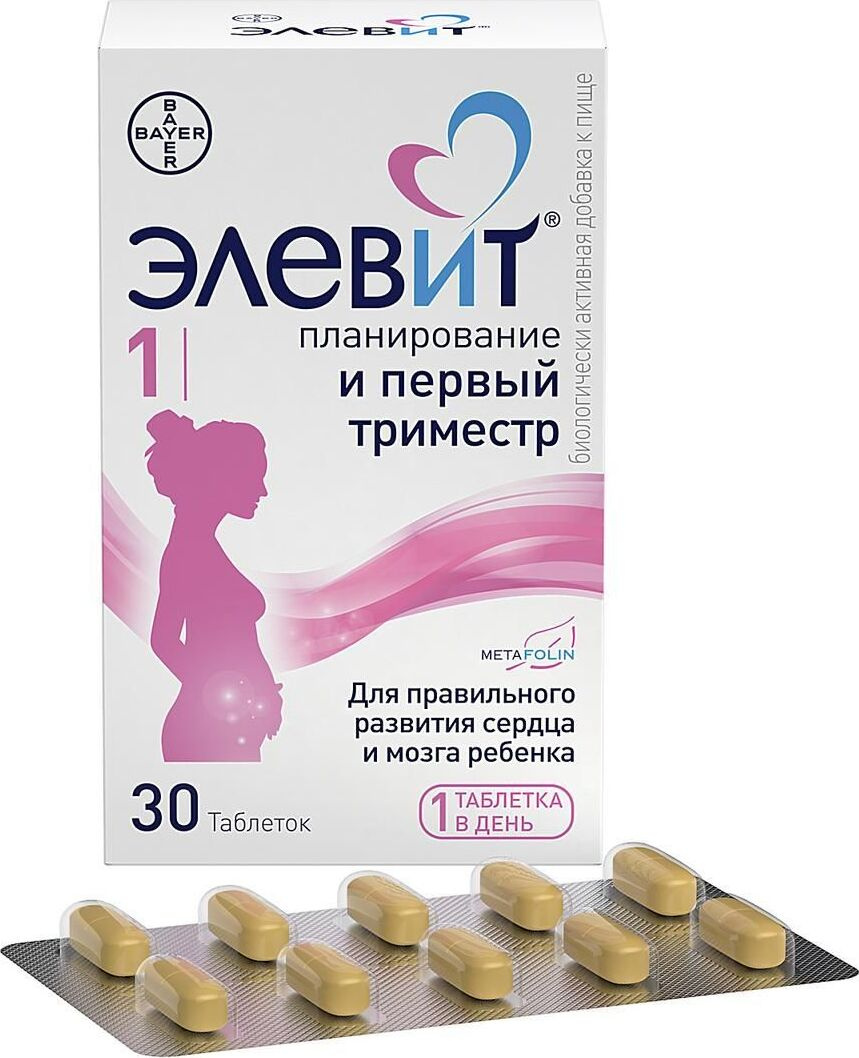 Под номером «1» выпускаются розовые овальные таблетки, предназначенные для женщин на раннем сроке беременности (в первые 12 недель) . Они являются источником 10 витаминов и йода .