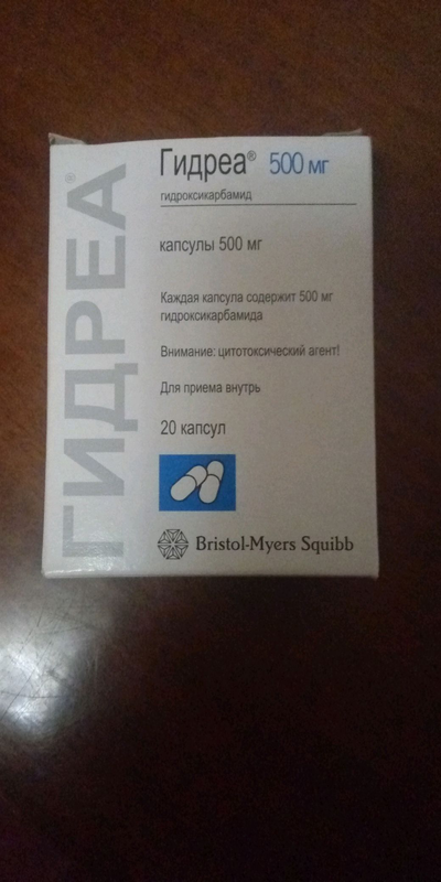 Истинная полицитемия: применение Гидреа начинают с 15-20 мг/кг в день . Доза устанавливается индивидуально, при этом желательно поддерживать число тромбоцитов - ниже 400 000/мкл, гематокрит - на уровне ниже 45% . В большинстве случаев это удается при постоянном применении гидроксикарбамида в суточной дозе 500 -1000 мг;