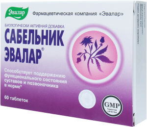 Препарат «Сабельник-Эвалар» рекомендован в качестве общеукрепляющего средства при повышенных нагрузках на опорно-двигательный аппарат . Применяется в комплексном лечении костно-суставных заболеваний (артриты, артрозы, подагра, остеохондроз и др .), эффективен и при ревматоидном полиартрите .