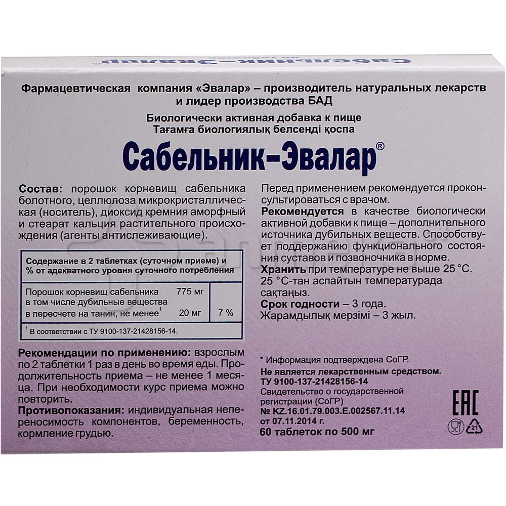 Сабельник Эвалар таблетки, 60 шт .: инструкция, цена . . .