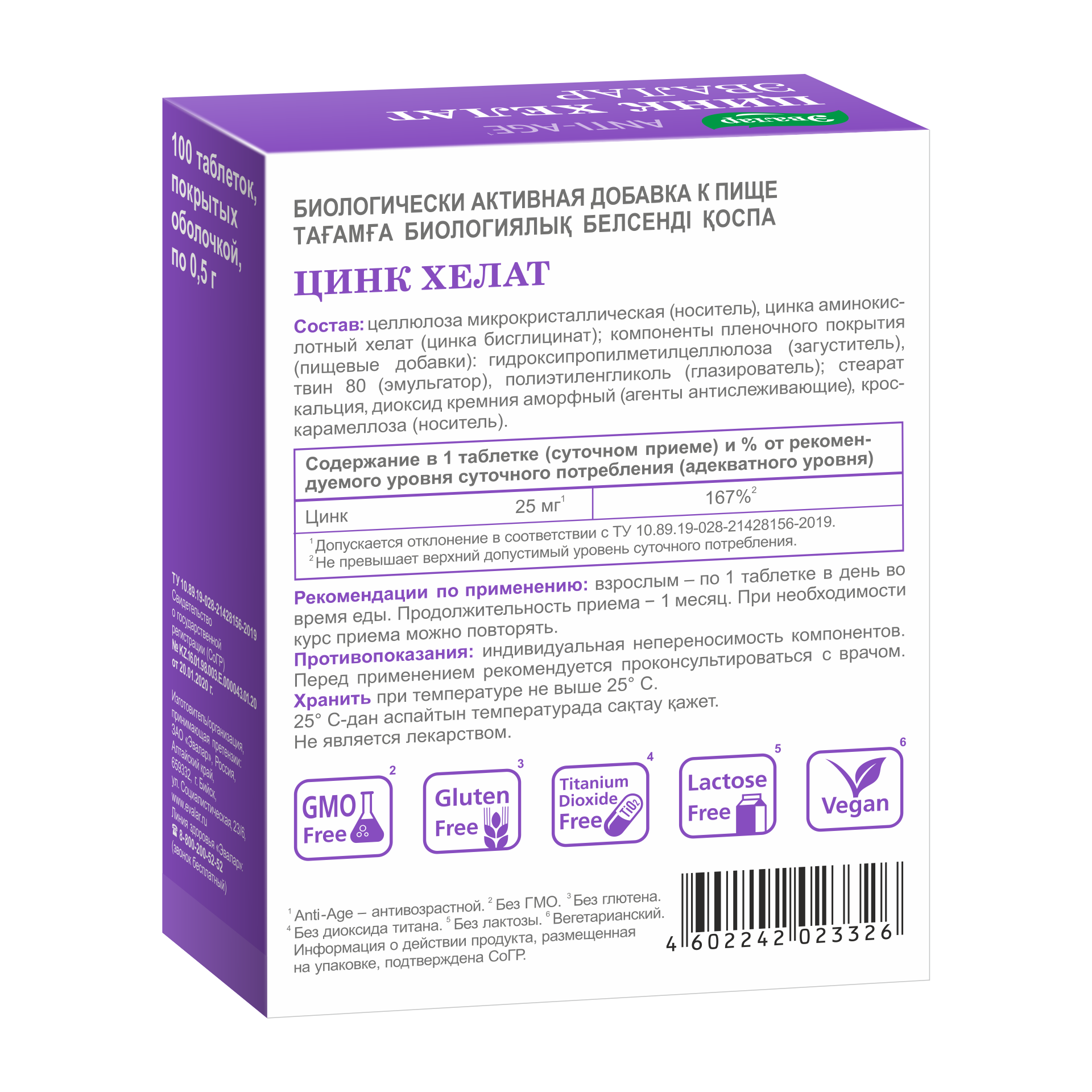Таблетки цинк хелат эвалар