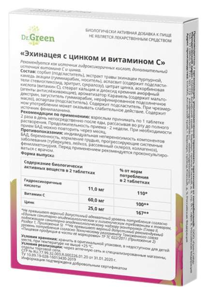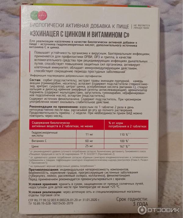 Таблетки эхинацея с цинком