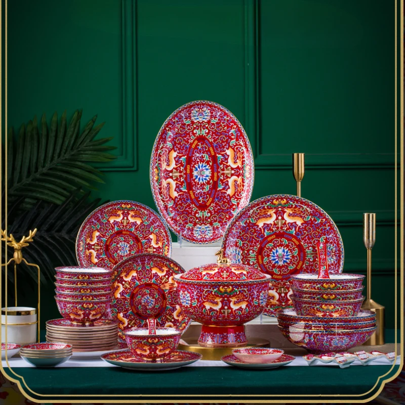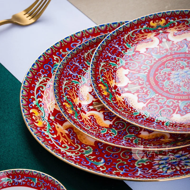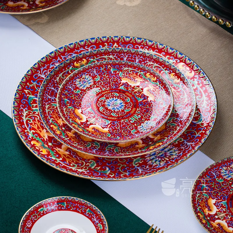 Tableware Ceramic Bowl and Dish Set Round Combination Single Chinese Household Bone Porcelain Plate High-Grade Enamel HotelTable - Купить с бесплатной доставкой