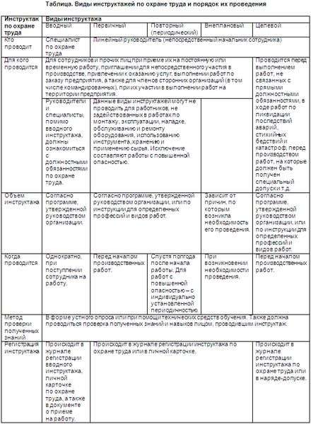 Таблица 1 охраны труда