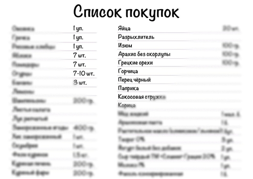 Таблица Для Покупок В Магазине