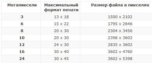 Таблица Форматов Фото