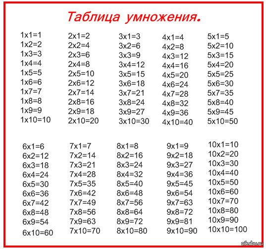 Таблица Умножения Фото 7