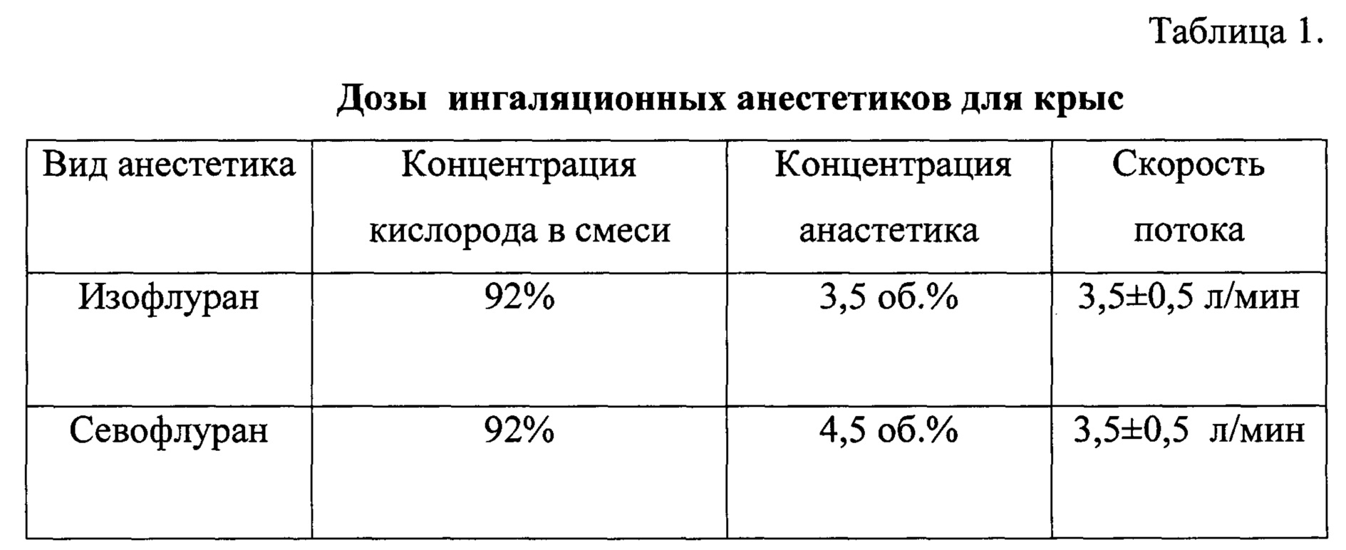 Таблица анестетиков