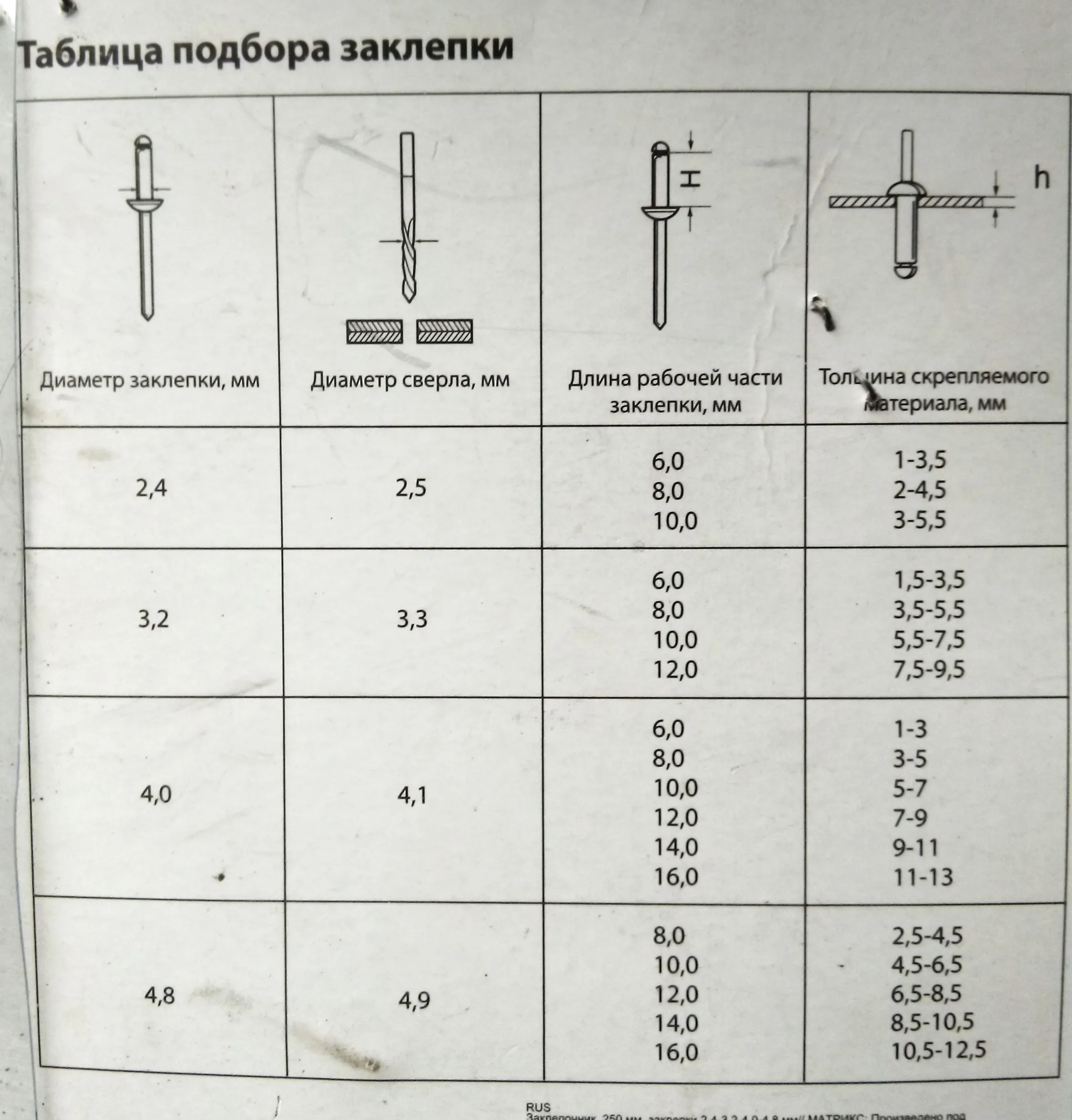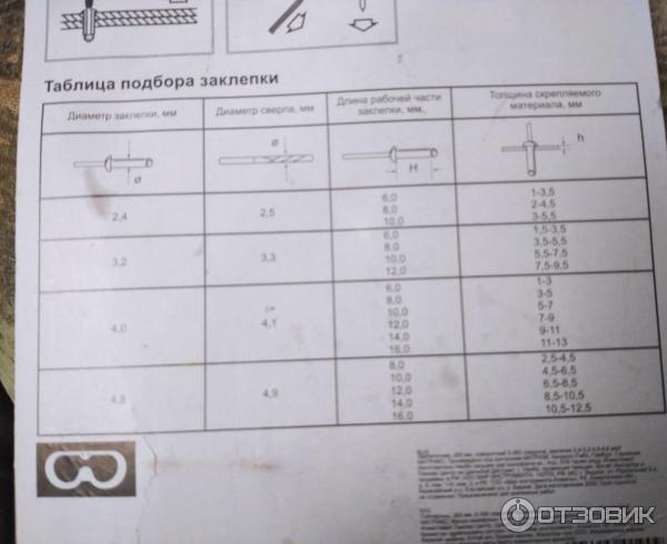 Таблица для заклепочника 116 фотографий