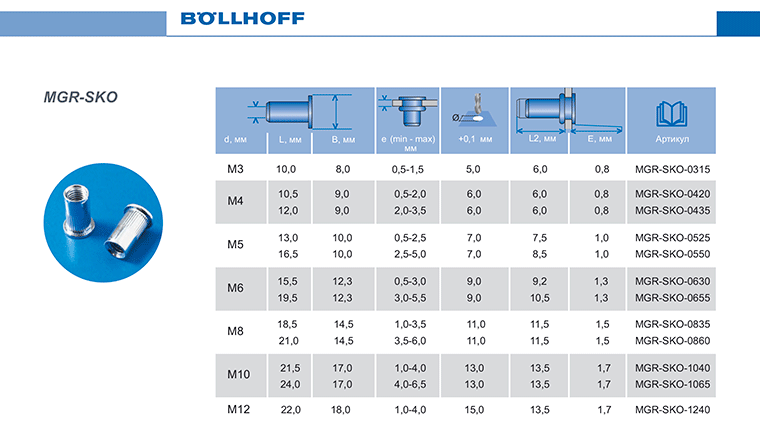 Таблица для заклепочника