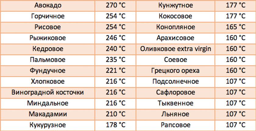 Таблица горения масла