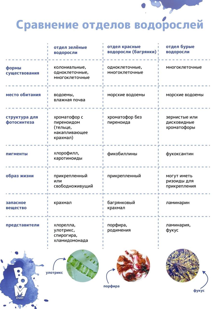 Таблица группа водорослей представители и значение 108 фото