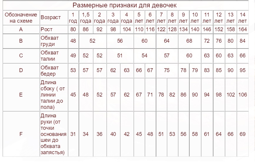 Таблица измерения дети