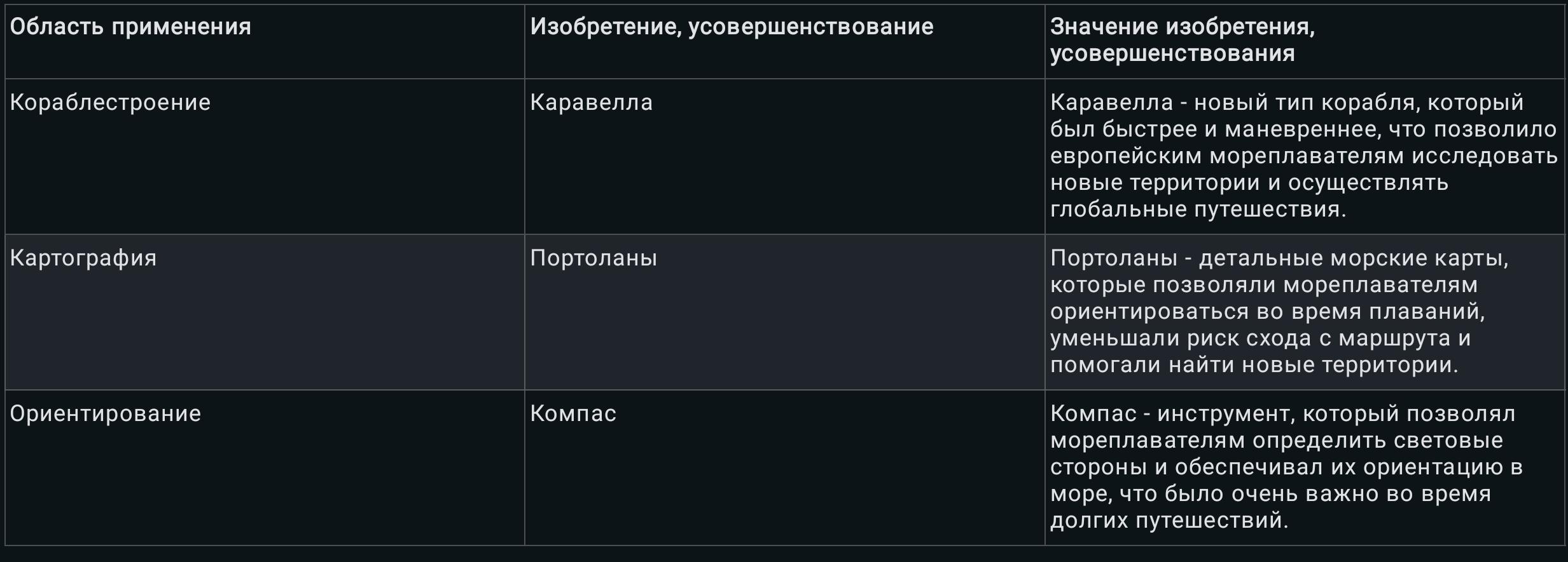 Таблица изобретения и усовершенствования и значение