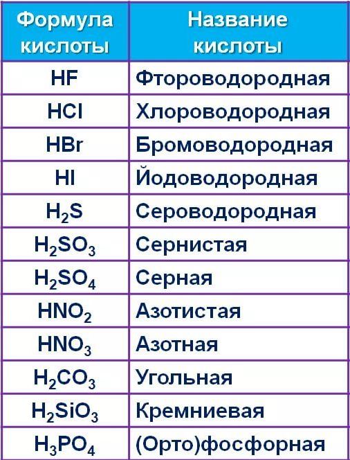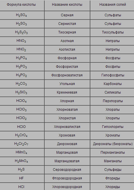 Таблица кислота название кислоты название соли 134 фото