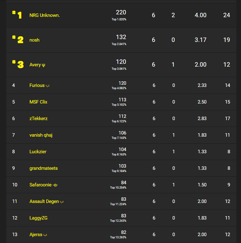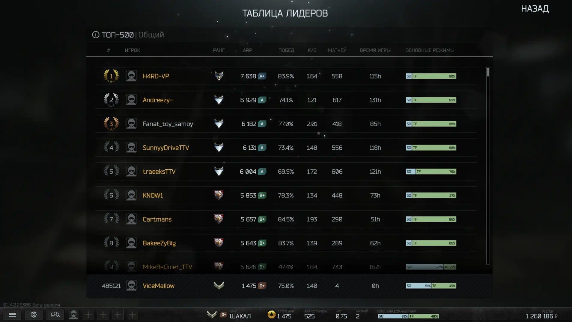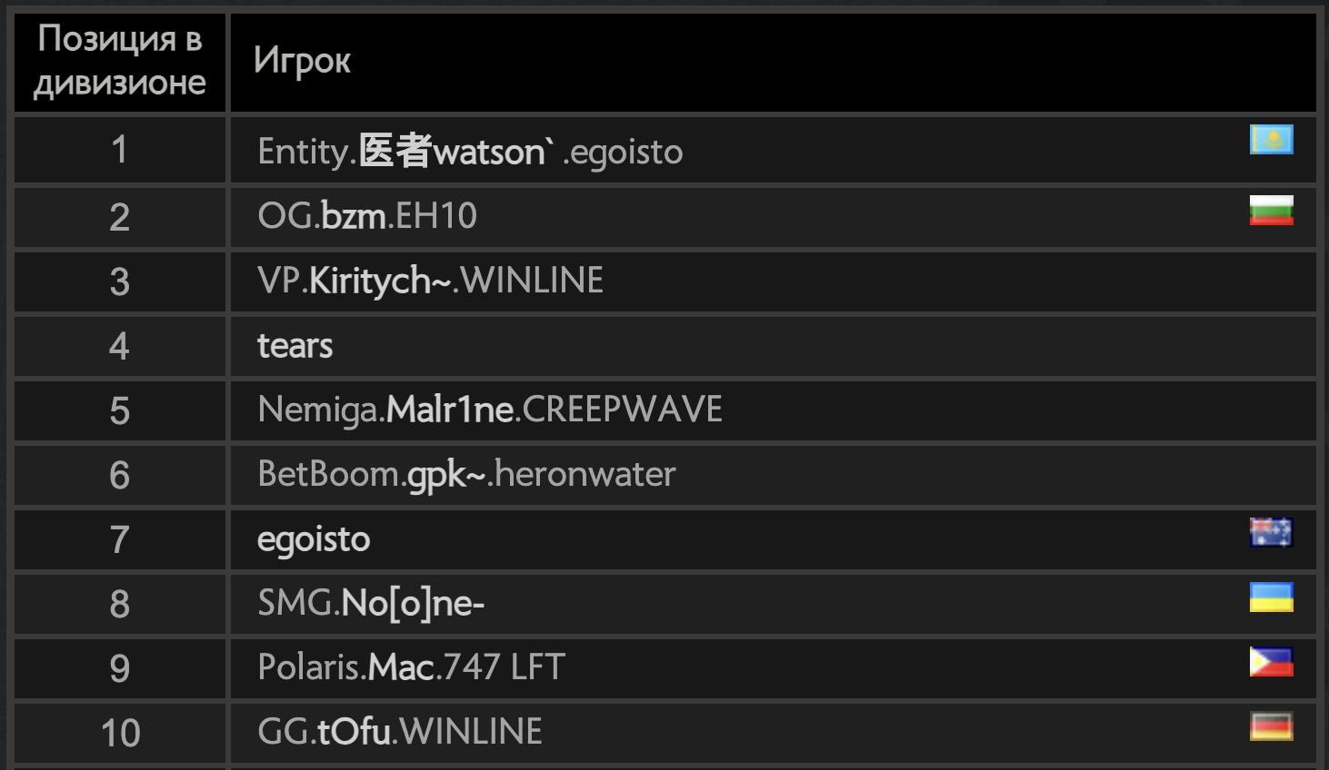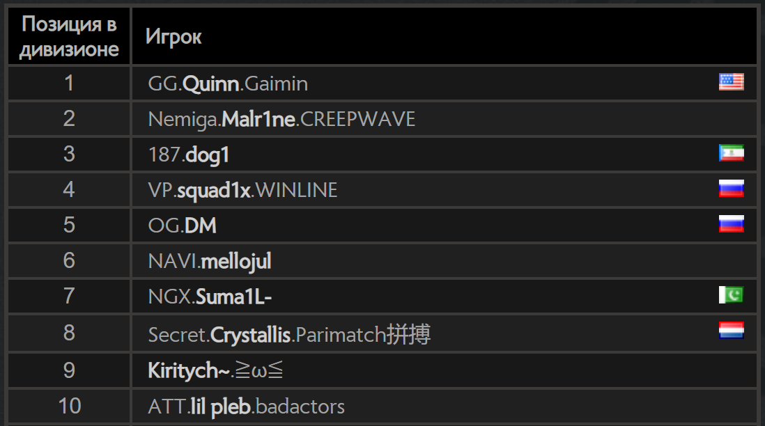 Таблица лидеров игры