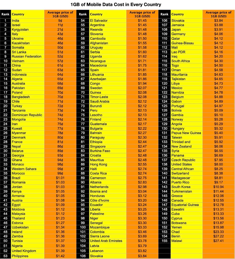 Таблица малави