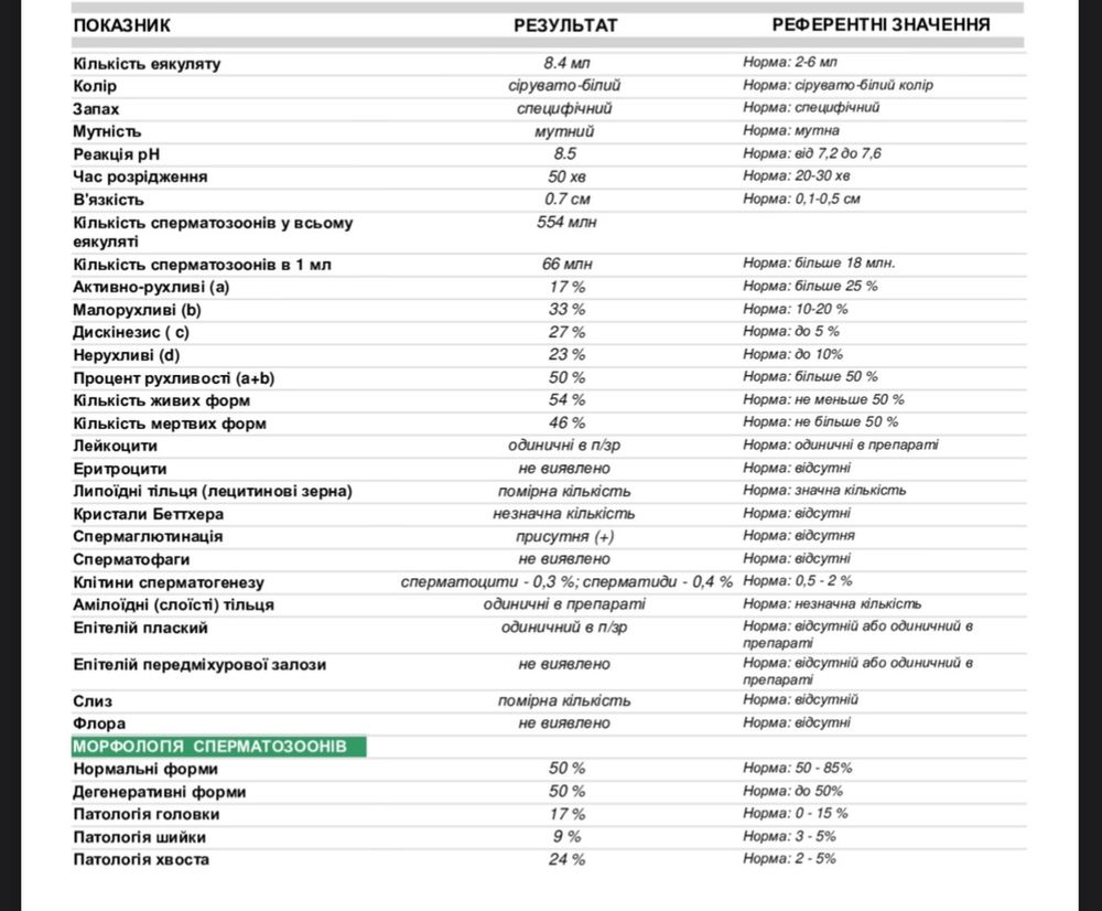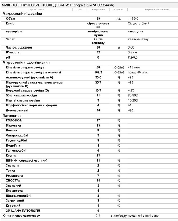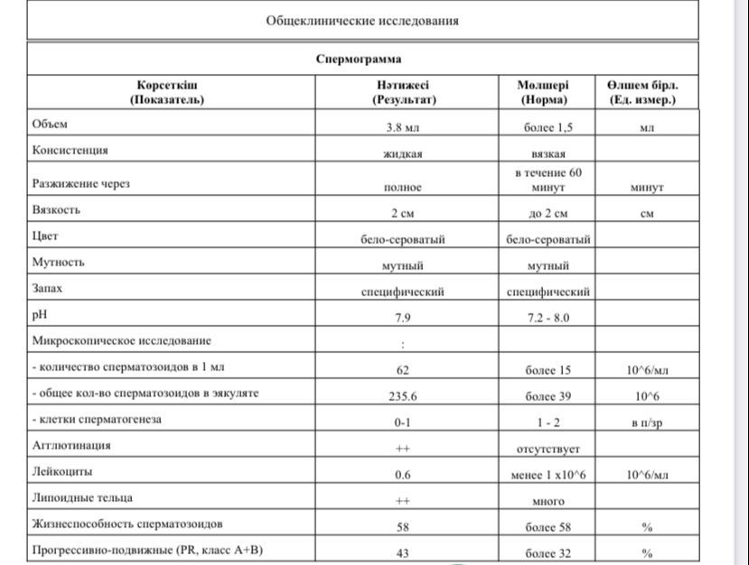 Таблица норм спермограммы