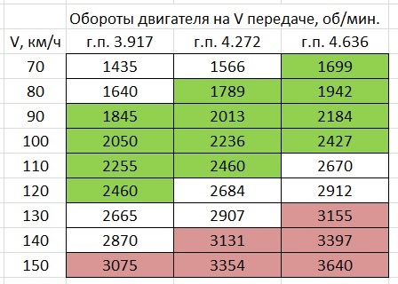 Таблица оборотов двигателя