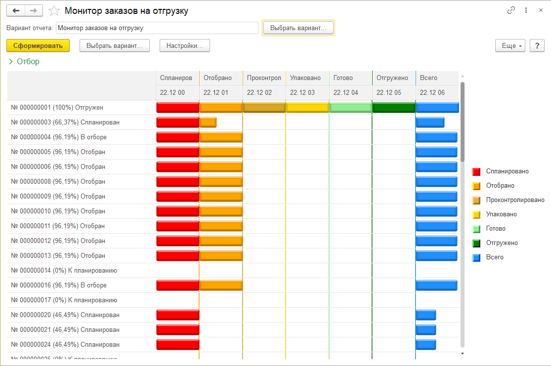Таблица отгрузок
