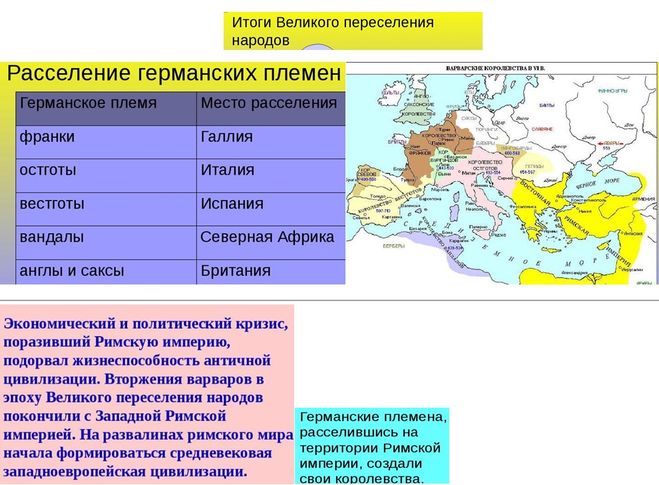 Таблица по истории 6 класс варварские королевства
