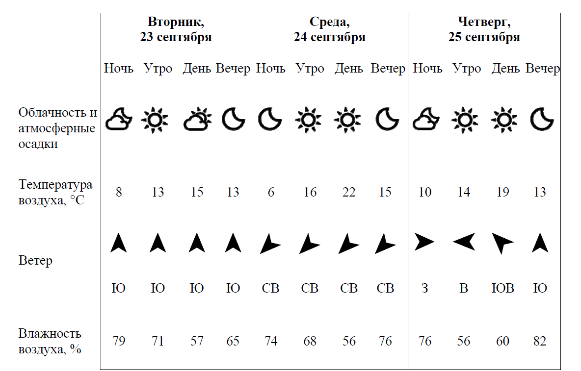 Таблица погоды 4 класс