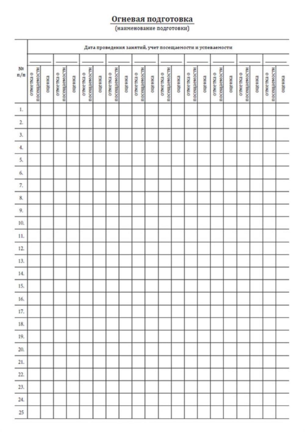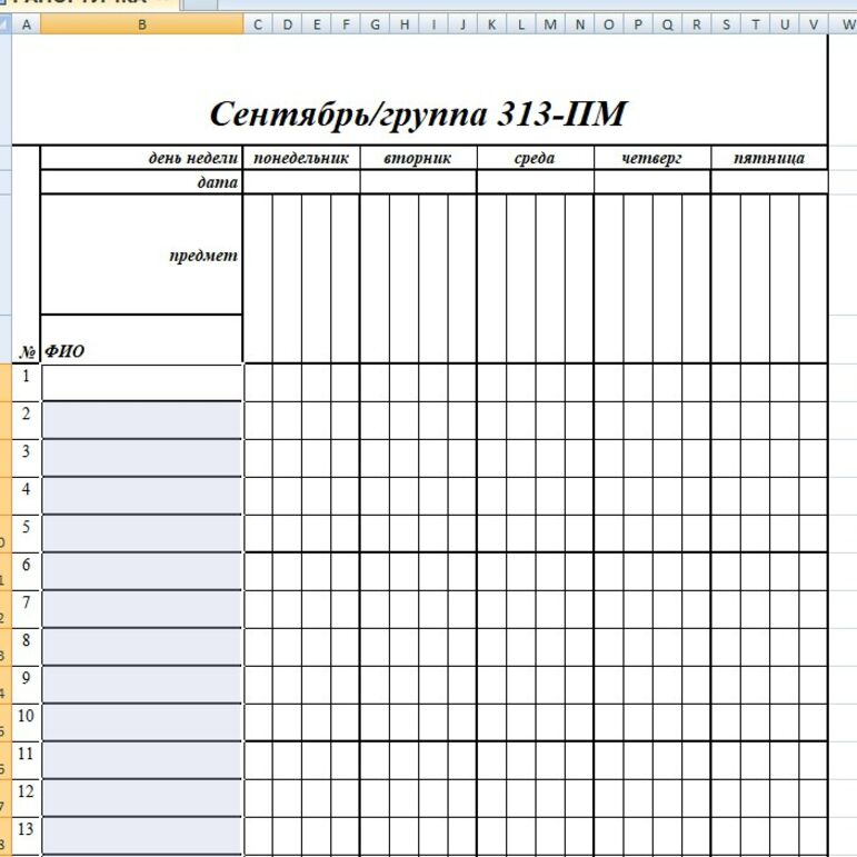 Таблица посещаемости студентов шаблон