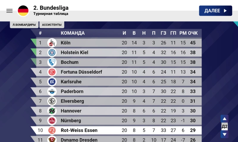 Таблица после 20 туров