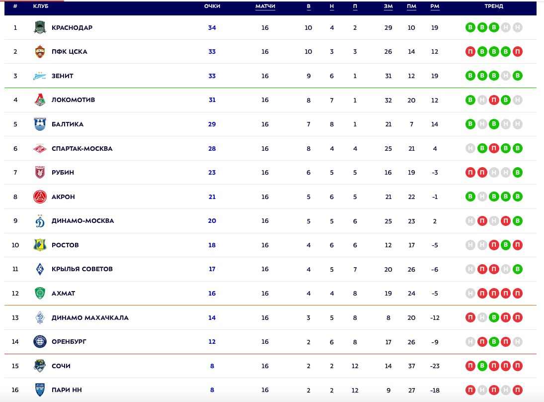 Таблица после 20 туров 135 фото