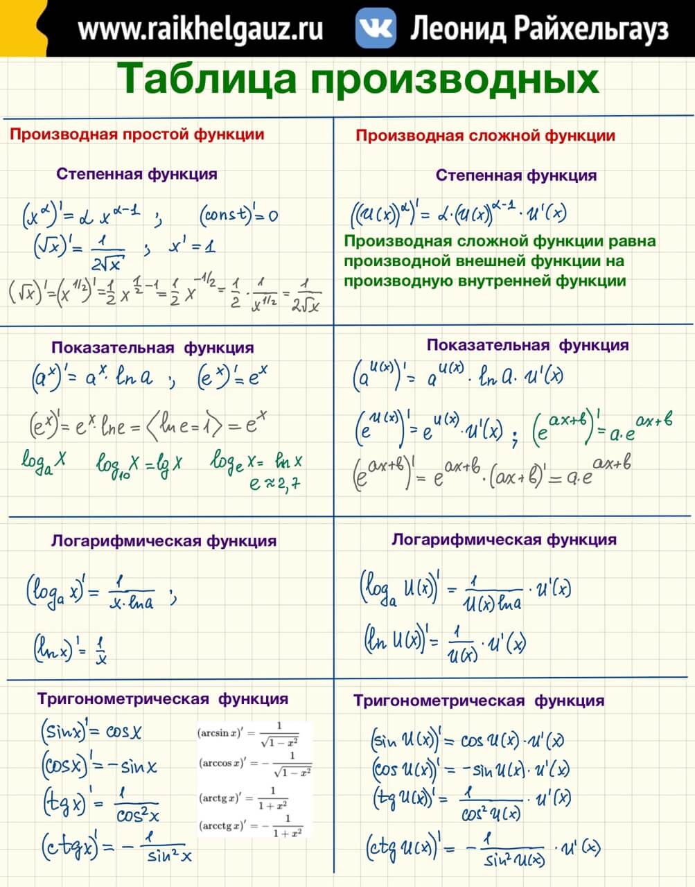 Таблица производная математика