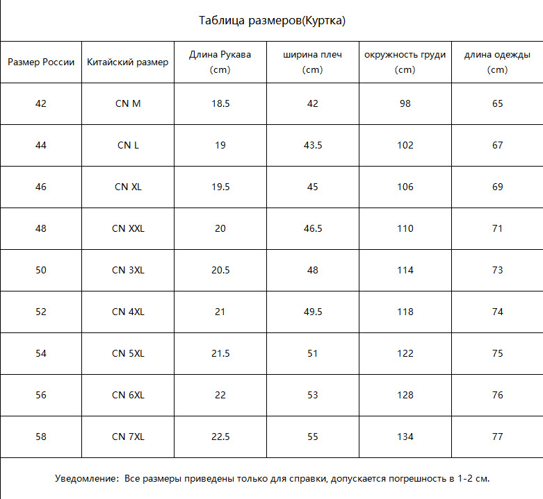 Таблица размеров чехлов